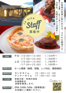 ※La vitaでは、一緒に働いてくれるスタッフを募集しております!※